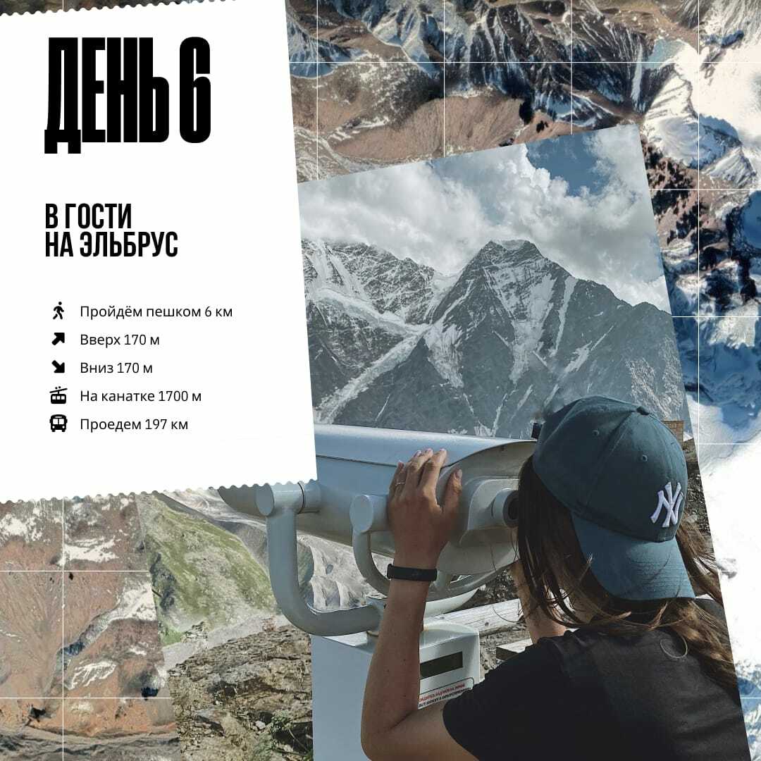 Целую неделю будем жить в оборудованном кемпе у подножия высочайшей горы России и Европы. Каждый день - сочная и разнообразная программа, после которой ты влюбишься в горы раз и навсегда. Чекай программу и присоединяйся к нашей горной тусовке!
