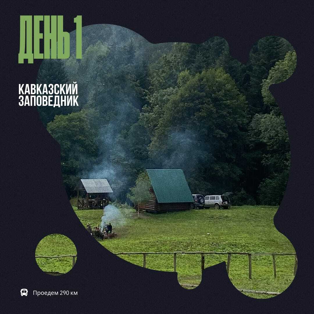 Встречаемся утром на вокзале Мин.Вод/Пятигорска и на заказном транспорте отправляемся в Карачаево-Черкесию, в поселок Псемён, — здесь заканчивается асфальтированная дорога. После обеда погрузимся в высокопроходимый транспорт, на которой сможем добраться до кордона Кавказского Заповедника. Здесь мы разобьем лагерь. Перед ужином распределим провизию и общественное снаряжение, пройдем инструктаж по использованию походного снаряжения и безопасности в горах. Вечером лампово посидим у костра и познакомимся поближе.