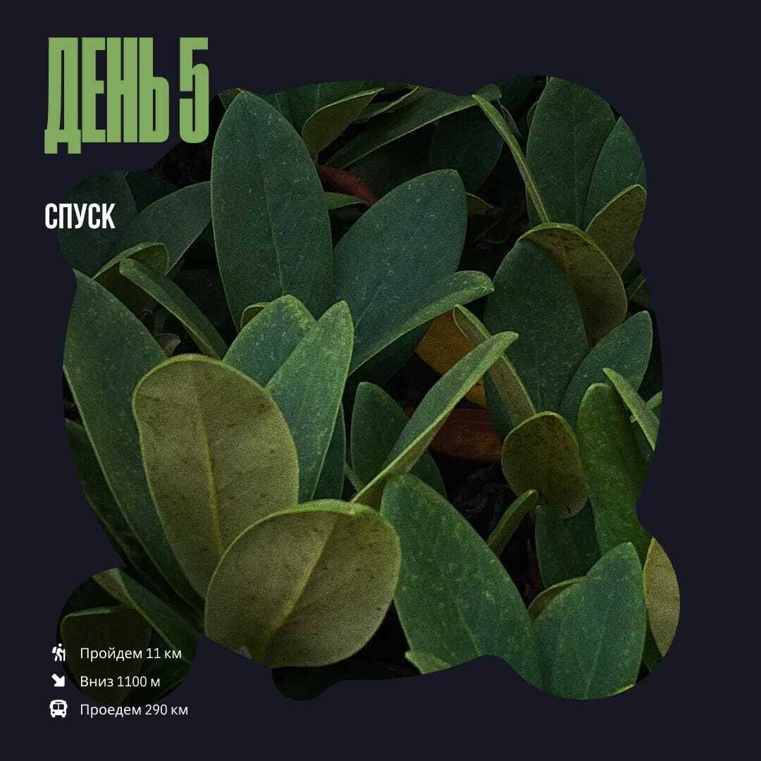 Сегодня нам предстоит длинный путь, поэтому просыпаемся рано и разминаем колени. После завтрака собираем лагерь и стартуем вниз. На выходе из заповедника нас встретит “шишига”, на которой мы вернёмся в цивилизацию. Пообедаем в гестхаусе, пересядем на комфортабельный транспорт и поздним вечером приедем в Мин.Воды/Пятигорск.