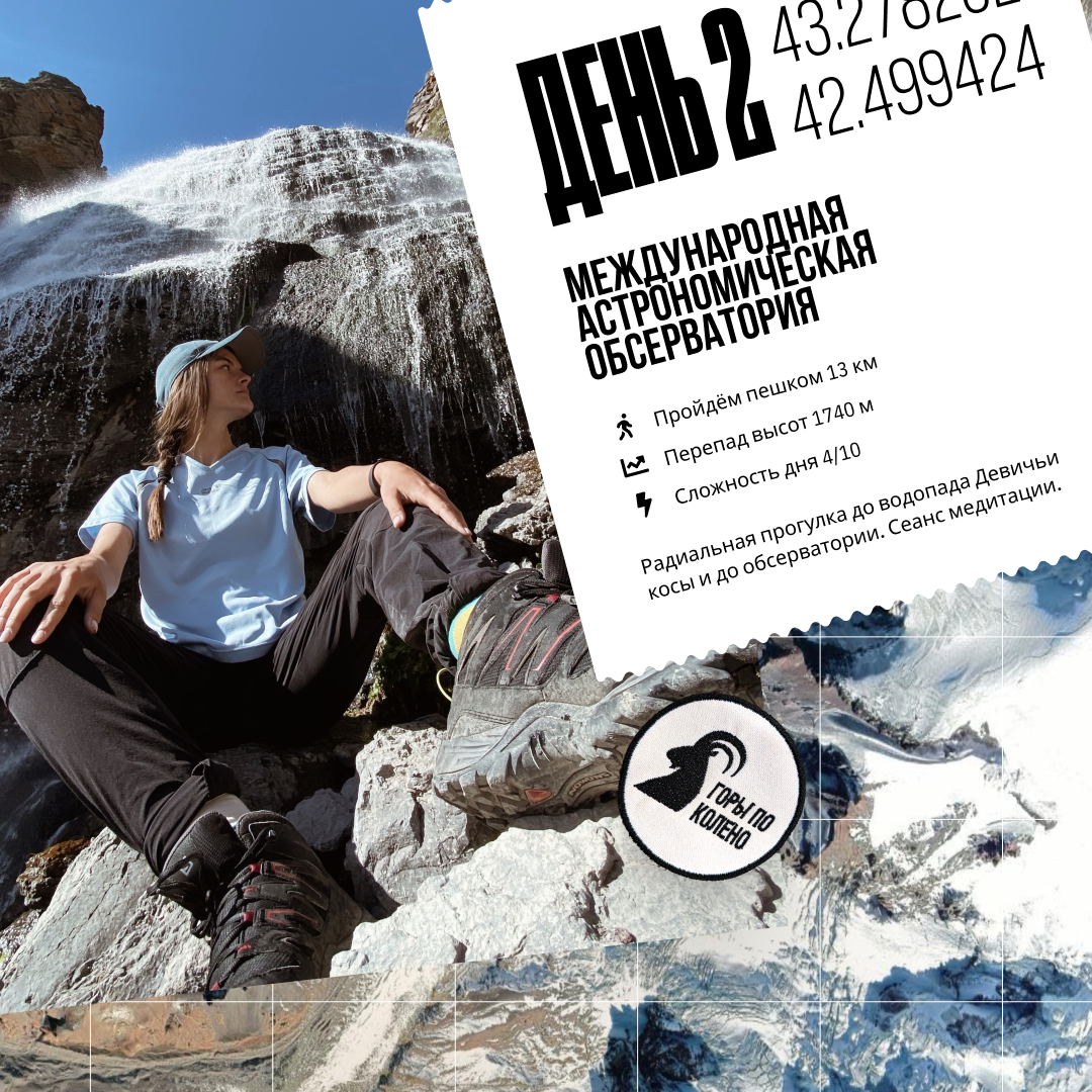 Сегодня нас ждет интересный радиальный выход длиной в 12 км. Петляя по горному серпантину, мы дойдем до водопада Девичьи косы и доберемся до международной астрономической обсерватории на высоте 3150 м над уровнем моря, откуда открывается невероятный вид на Баксанское ущелье, в котором находится наш лагерь. В этот день мы проверим, кто физически подготовился к выезду, а кто ленился заниматься спортом, ведь в этот день набор высоты больше 1000 м.